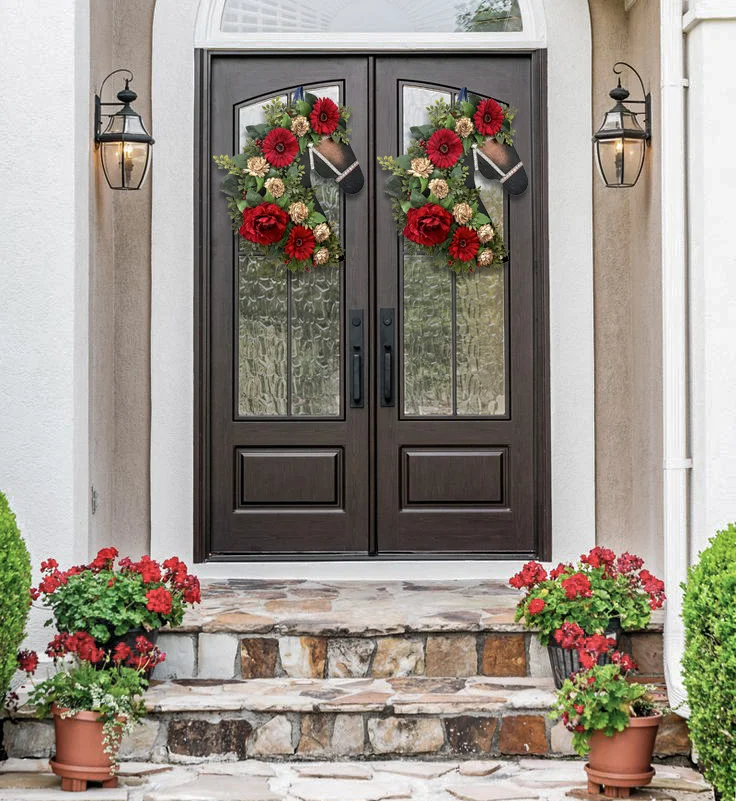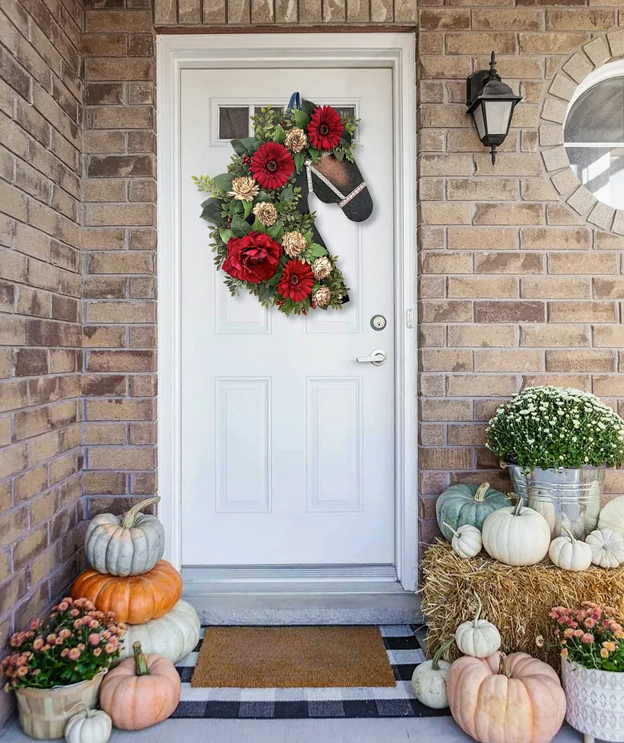 💖If you are a horse lover, you will love this horse head wreath ornament. It consists of high quality flowers and leaves in a realistic shape with a horse's head. Perfect as a holiday, birthday or anniversary gift, or as a great addition to your home.