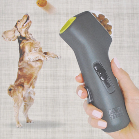 This pet food ejecting gun can eject food quite far so as to promote your dog's reaction capacity and physical ability. It is very easy to operate, you just need put food into the gun and push the trigger, then the food will ejected from the gun.