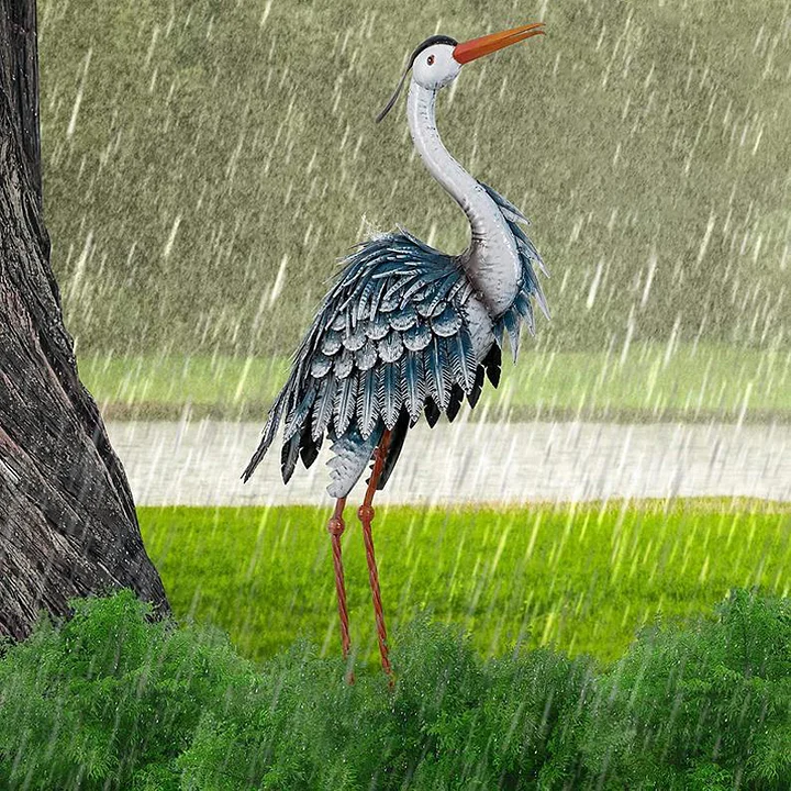 -Easy to Assemble --The Legs of metal statues knock-down for shipping, no tools required for assembly. Includes the U-shaped stake in the package to stabilize heron's feet in the ground. You would easily install them by following the instructions as pictures.