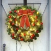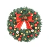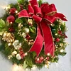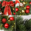 🎅Perfect Christmas Red Velet Bow with Glitter bulbs, wild berry ornament and leafy golden picks harmonize beautifully on the mixed pine needles.