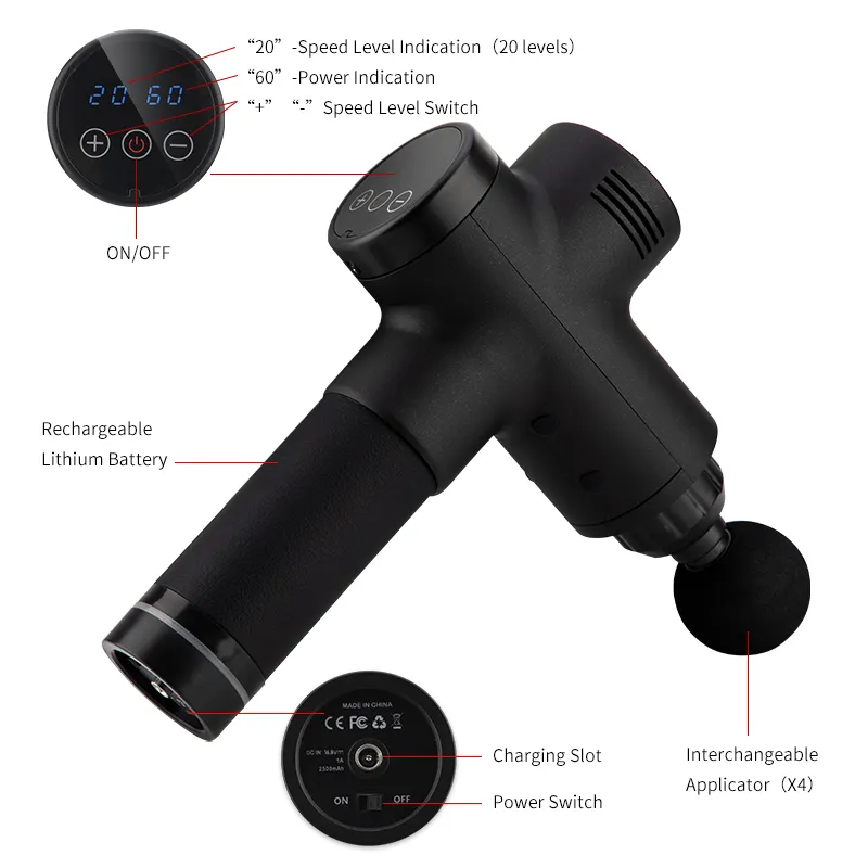 This personal handheld massager gun helps you overcome muscle soreness, relieve body fatigue, combat stiffness and spasms.