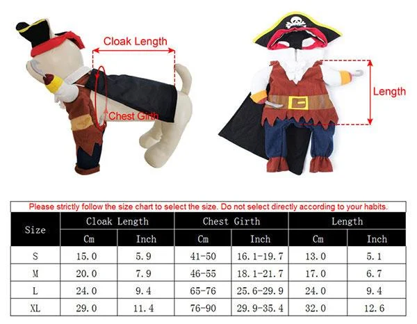 The little hook arm sways with each step, it's so funny to watch. You can't help taking many photos of your dog when it wears this pirates costume, and share them with your friends.