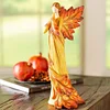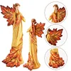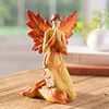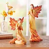 Fall Angel with Leaf Wings and Fiery Hues of Autumn, With carved leaves as wings and a handpainted finish, this Fall Angel statue emanates autumnal charm.