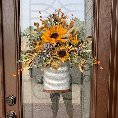 Farmhouse Sunflower Door Basket-The Flowerpot Door Wreath is Unique,Spring Summer Artificial Flowers Decor,Beautiful Artificial Wreath Decor