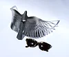The Large bird kinetic sculpture measures a little more than 15" (40 cm) from edge to edge, and 7" (17 cm) from front to back