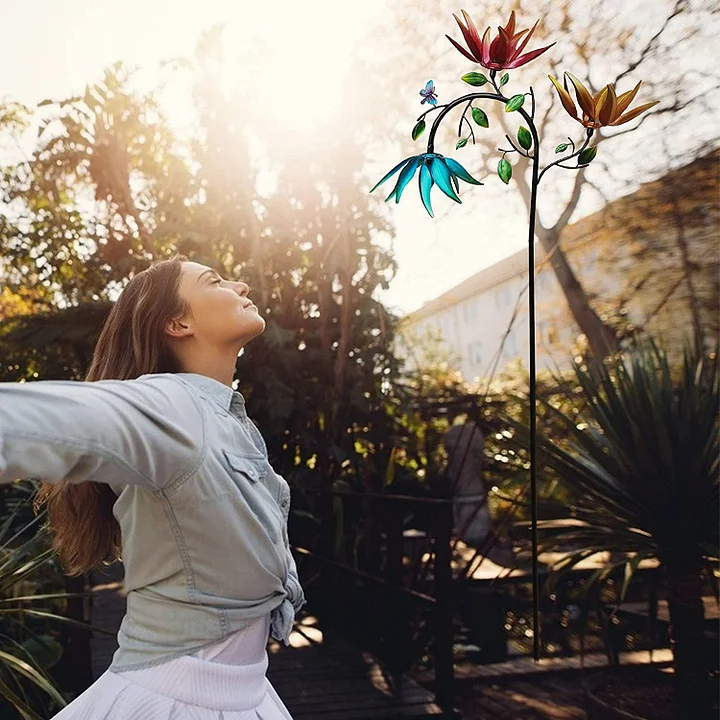 - 🌺 2021 METAL WIND SPINNER: Add new life to your landscape with this Large Wind Spinner with Three Spinning Flowers. Just plant this eye-catching, artistic accent in your garden, and you’ll be ready for spring’s arrival. No matter the season, you’ll love the movement and color it brings to your yard.MagicXflow