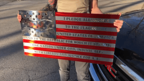 The perfect gift for yourself or any other true American! Each flag is meticulously handcrafted using the latest in CNC Fiber Laser technology. The stars are heat treated with oxyacetylene assuring that no two pieces are identical. The color is achieved with a transparent red powder coat and a glossy layer of clear for ultimate protection!