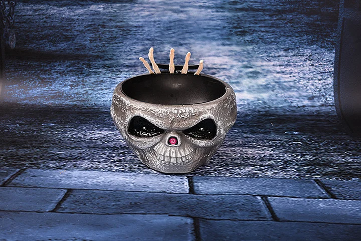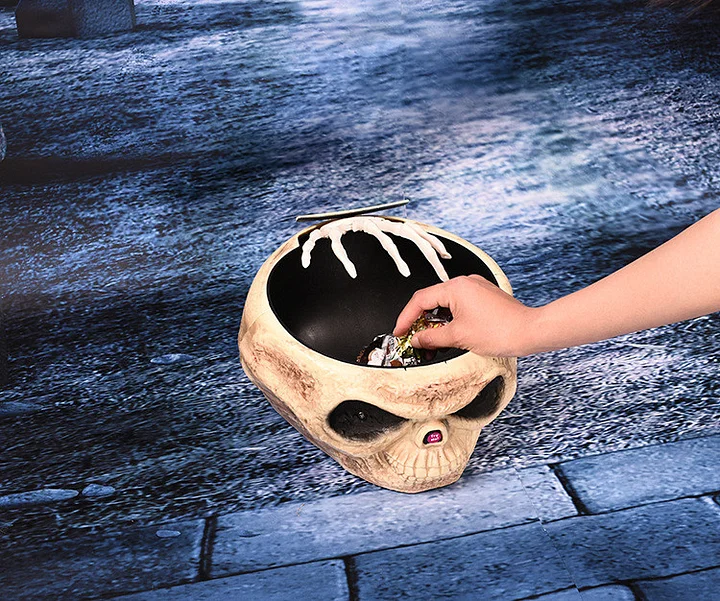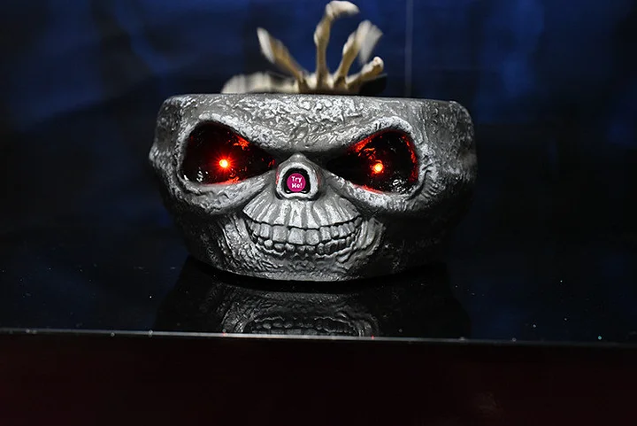 Skull Head Scary Eye Halloween Candy Bowl with Moving Hand