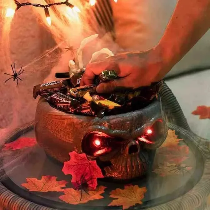 Fun Horror Decorations - Transform your home into a haunted house using spooky halloween bowls for candy. Requires 3 AA batteries, not included