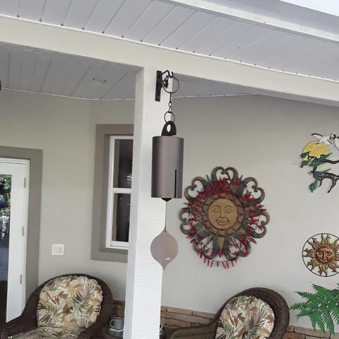 This handcrafted, wind-activated bell, with its bold tone and design, functions nicely as a welcome bell at any entrance to your home or garden.