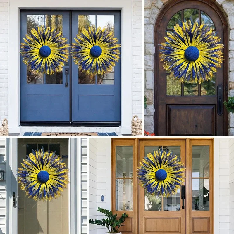 The sunflower is also the the invaded country flower with colors of yellow and blue. Display in honor and support of the people there. Sunflower decor is versatile from early spring to late fall.Show your support for the invaded country by hanging this beautiful wreath for all to see.